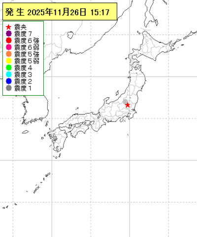 | 2025年11月26日15時17分ごろ | 福島県会津 | 1.7 | 1 |