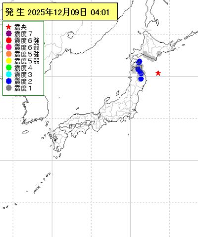 | 2025年12月09日13時47分ごろ | 青森県東方沖 | 4 | 1 |