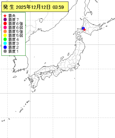 | 2025年12月11日19時12分ごろ | 浦河沖 | 3.9 | 2 |