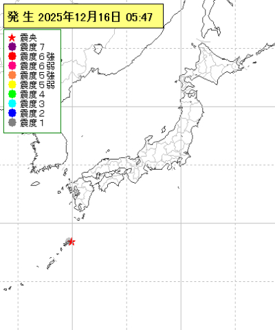 | 2025年12月16日05時47分ごろ | 奄美大島近海 | 3.4 | 1 |