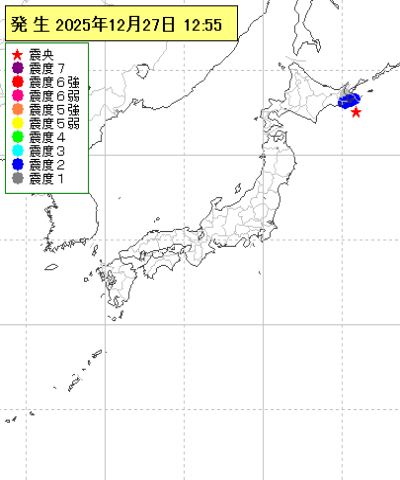 2025年12月27日12時55分ごろ地震がありました。