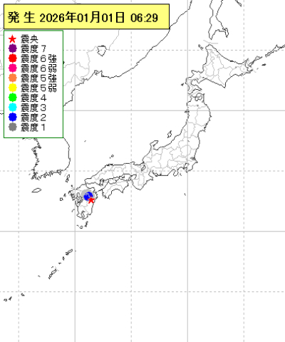| 2026年01月01日06時29分ごろ | 熊本県阿蘇地方 | 3.3 | 2 |