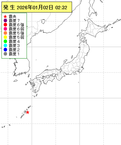 | 2026年01月02日02時32分ごろ | 奄美大島近海 | 3.7 | 1 |