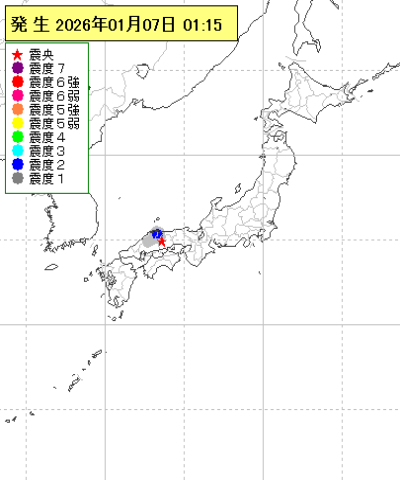 | 2026年01月07日01時15分ごろ | 島根県東部 | 3.5 | 2 |