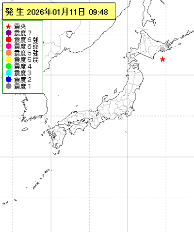 | 2026年01月11日09時48分ごろ | 十勝沖 | 4 | 1 |