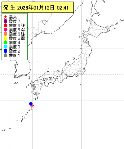 | 2026年01月12日02時41分ごろ | トカラ列島近海 | 2.9 | 2 |