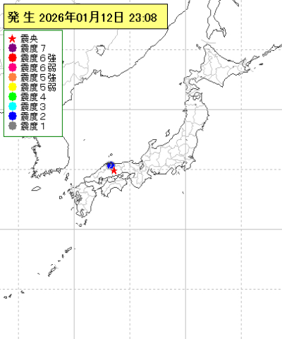| 2026年01月12日23時08分ごろ | 島根県東部 | 3.2 | 2 |