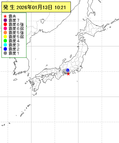 2026年01月13日10時21分ごろ地震がありました。