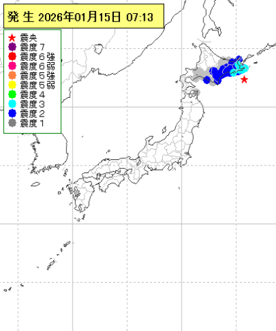 | 2026年01月15日07時13分ごろ | 釧路沖 | 5.7 | 3 |
