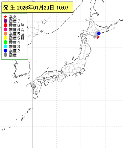 | 2026年01月23日10時07分ごろ | 十勝地方南部 | 3.9 | 2 |