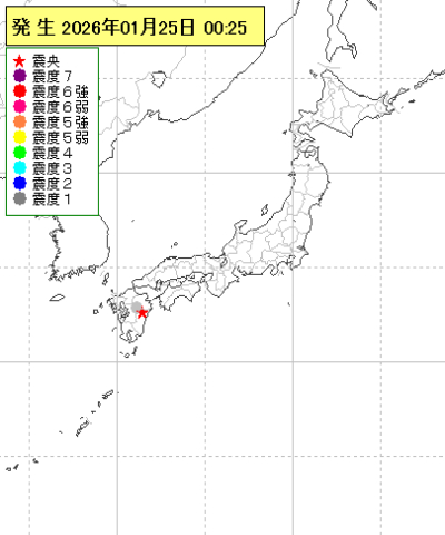 | 2026年01月25日00時25分ごろ | 熊本県阿蘇地方 | 2.5 | 1 |