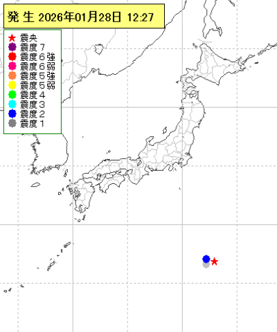 | 2026年01月28日12時27分ごろ | 父島近海 | 4.6 | 2 |