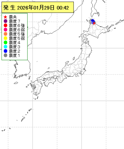 | 2026年01月29日00時42分ごろ | 宗谷地方南部 | 4.2 | 2 |