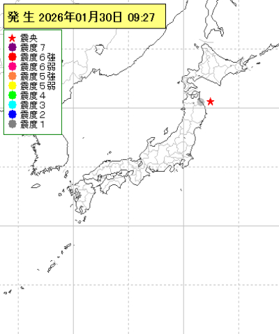 | 2026年01月30日09時27分ごろ | 青森県東方沖 | 3.4 | 1 |