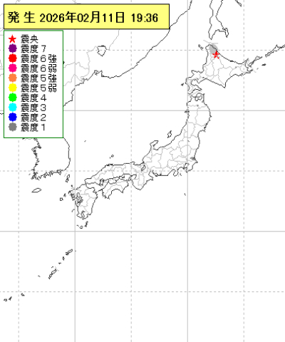 | 2026年02月11日19時36分ごろ | 宗谷地方南部 | 3.5 | 1 |