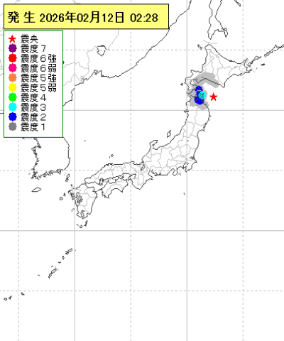 2026年02月12日02時28分ごろ地震がありました。
