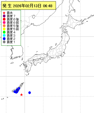 | 2026年02月13日06時48分ごろ | 沖縄本島近海 | 5.5 | 2 |