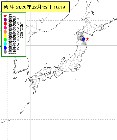 2026年02月15日16時19分ごろ地震がありました。