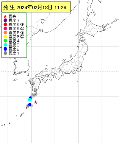 | 2026年02月18日11時28分ごろ | 奄美大島北東沖 | 4.7 | 3 |
