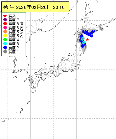 2026年02月20日23時16分ごろ地震がありました。