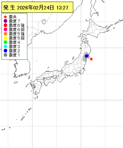 | 2026年02月24日13時27分ごろ | 宮城県沖 | 4 | 2 |