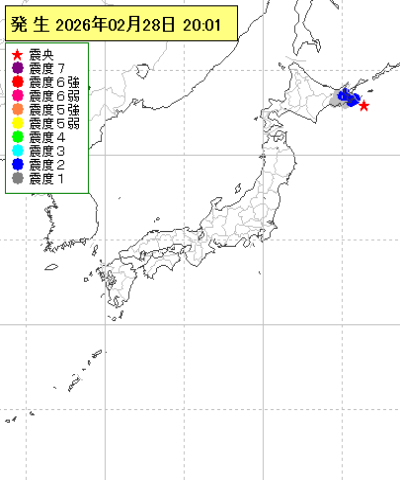 | 2026年02月28日20時01分ごろ | 根室半島南東沖 | 4.2 | 2 |