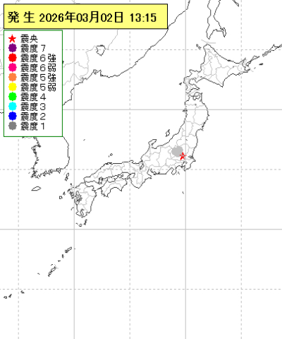 | 2026年03月02日13時15分ごろ | 群馬県南部 | 3.1 | 1 |