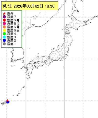 | 2026年03月02日18時23分ごろ | 宮古島近海 | 4.7 | 1 |