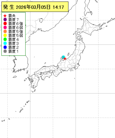 | 2026年03月05日14時17分ごろ | 石川県能登地方 | 3.3 | 3 |