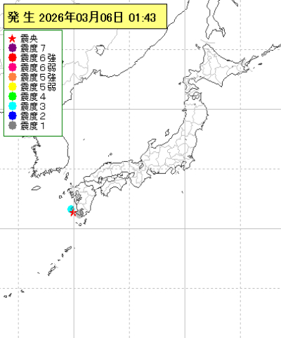 | 2026年03月06日01時43分ごろ | 薩摩半島西方沖 | 3.5 | 3 |