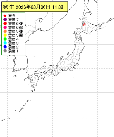 | 2026年03月06日11時33分ごろ | 北海道北西沖 | 2.1 | 1 |