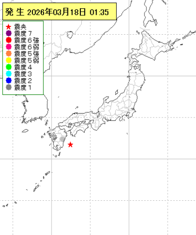 | 2026年03月18日01時35分ごろ | 日向灘 | 3.3 | 1 |