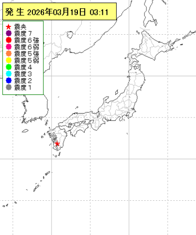 | 2026年03月19日03時11分ごろ | 熊本県天草・芦北地方 | 1.7 | 1 |