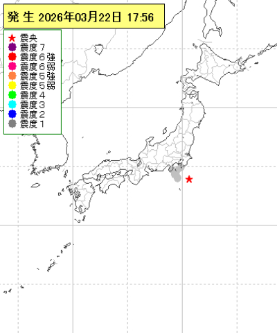 | 2026年03月22日17時56分ごろ | 房総半島南方沖 | 4.2 | 1 |