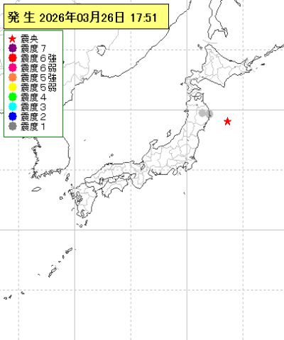 | 2026年03月26日17時51分ごろ | 三陸沖 | 4.6 | 1 |