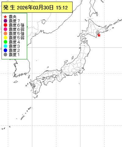 | 2026年03月30日15時12分ごろ | 十勝地方中部 | 3.3 | 1 |