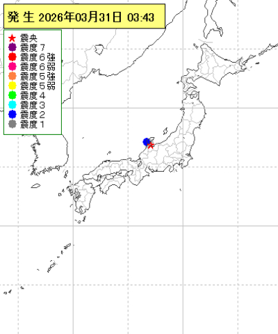 2026年03月31日03時43分ごろ地震がありました。