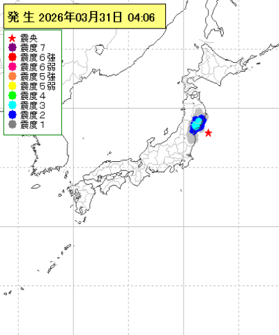 | 2026年03月31日04時06分ごろ | 宮城県沖 | 4.3 | 3 |