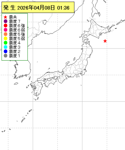 | 2026年04月08日01時36分ごろ | 十勝沖 | 4.6 | 1 |