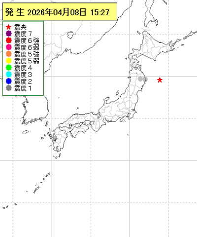 | 2026年04月08日15時27分ごろ | 三陸沖 | 4.3 | 1 |