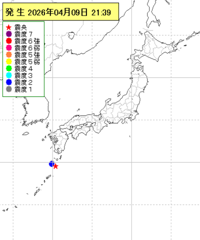 | 2026年04月09日21時39分ごろ | トカラ列島近海 | 2.3 | 2 |