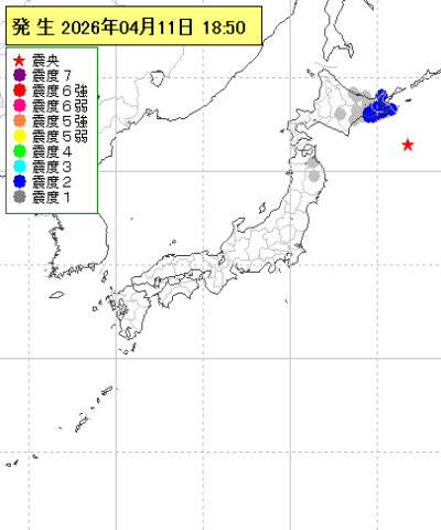 | 2026年04月11日18時50分ごろ | 釧路沖 | 5.3 | 2 |