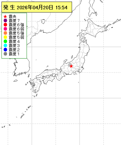 | 発生時刻 | 震源地 | マグニチュード | 最大震度 |