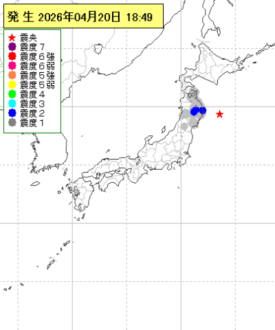 | 2026年04月20日19時44分ごろ | 三陸沖 | 4.9 | 1 |