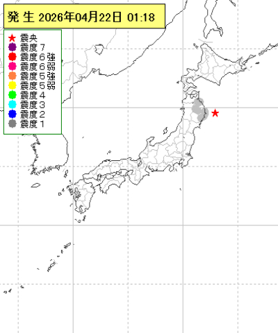 | 2026年04月22日01時18分ごろ | 岩手県沖 | 4.1 | 1 |