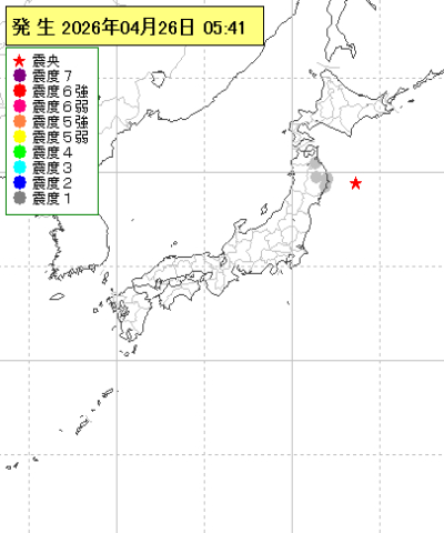 | 2026年04月26日05時41分ごろ | 三陸沖 | 4.7 | 1 |