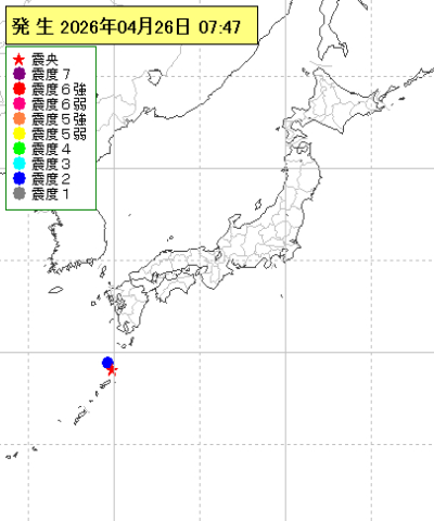 | 2026年04月26日07時47分ごろ | トカラ列島近海 | 2.4 | 2 |