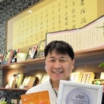銀賞の盾と商品を持つ諏訪園の酒井一行社長=丹波篠山市杉、茶遊菓楽諏訪園インター店