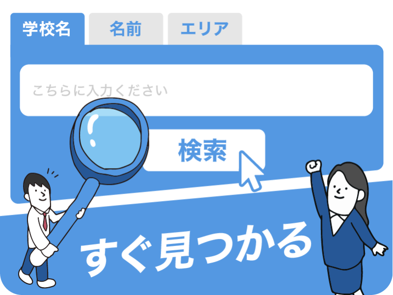 先⽣の名前や学校名、エリアを⼊⼒するだけで、お世話になった先⽣の情報が簡単に⾒つかります。