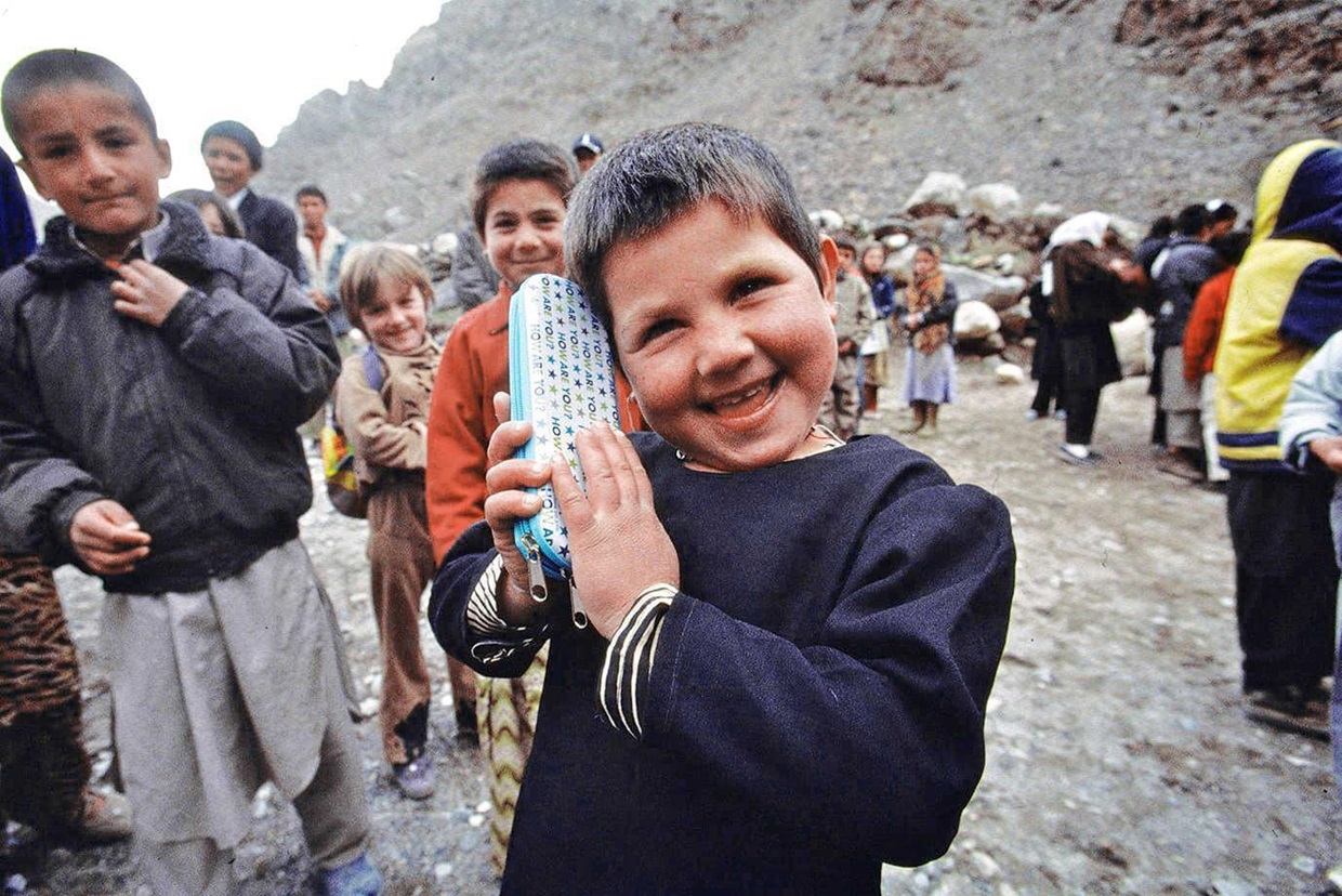 筆箱を顔に寄せ、笑みを見せる少女((C)2023 アフガニスタン山の学校支援の会/ルミエール・プラス)